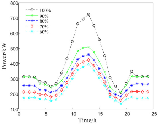 For Scenario 3, the impact of the demand response ratio on the overall operating cost of the IES is analyzed. The demand response load of the system available for scheduling is summarized in Table 3.