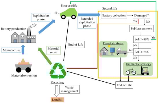 - Canals Casals, L.; García, B.A.; Cremades, L.V. Electric Vehicle Battery Reuse: Preparing for a Second Life. J. Ind. Eng. Manag. 2017, 10, 266–285. [Google Scholar] [CrossRef]