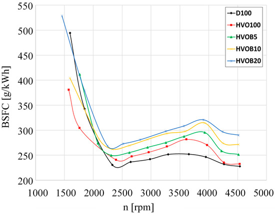 - The brake-specific fuel consumption (BSFC) of HVO fuel and various blends of HVO and biobutanol consistently demonstrates superior performance compared to D100, exhibiting a range of values that consistently surpass D100 by 1.7% to 28%.