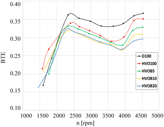 - The brake thermal efficiency of the D100 had a decline of 4.4% at an engine speed of 4500 rpm. Furthermore, augmenting the concentration of biobutanol in HVO led to a reduction in the brake thermal efficiency value.