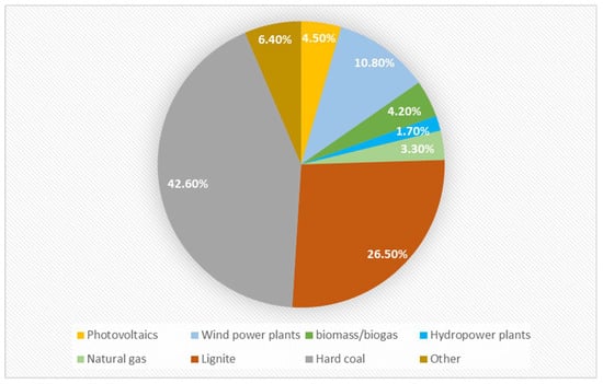 In light of these issues and the advancing climate change, resulting in EU and national legislation, renewable energy sources are becoming a viable alternative to grid-supplied energy, which in Poland, comes mainly from fossil fuels []. Figure 1 shows the individual energy sources in the electricity generation structure in Poland in 2022.