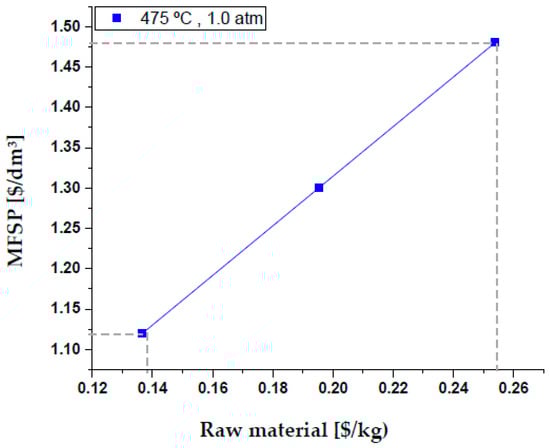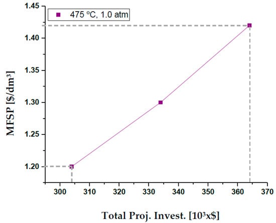 Finally, to reach the MFSP of USD 1.30/dm3 of fuel, a sensitivity analysis was carried out for a production of 2151.69 dm3/day of the studied fraction, being the cost of the material, bio-oil yield, total investment and electricity as the parameters that most affect the MFSP.
