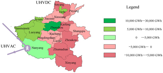 The difference between local power generation and electricity consumption in various cities of Henan Province in 2019.
