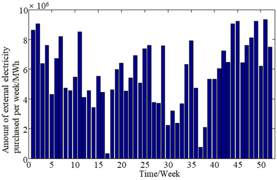 Amount of external electricity purchased per week for 52 weeks of the year.