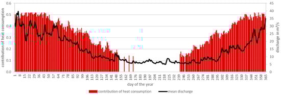 Comparison of the contribution of heat consumption and the mean discharge in a typical year.