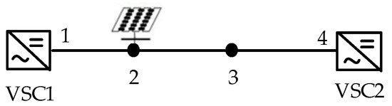 In Figure 4, with the increase in PV power, the operation point changes from a to b to c. As shown in Figure 4, when the PV power begins to increase, the power of the two droop-controlled VSCs increases to share the PV power. The operation point changes from a to b. The linear model can be used to represent the voltage variation and VSC power variation. With the further increase in PV output power, one VSC reaches the capacity limit and keeps constant-power operation at that limit. The adjustment of the VSC control strategy leads to the change in sensitivity matrix in (3), (5), and (6). The updated linear model corresponding to the current operation point should be used to estimate the variations in voltage and VSC power.