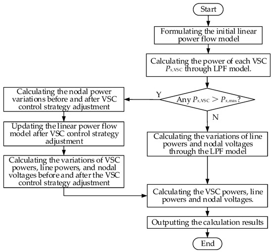 Flow chart of the PLPF calculation for one overloaded VSC.