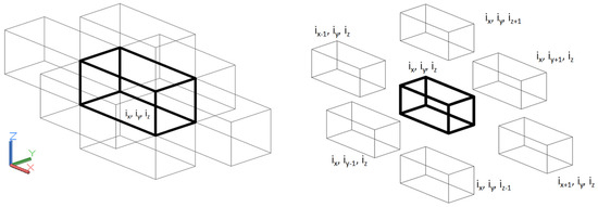 Energy and temperature balance calculations are carried out assuming a time step for each balance-difference element in Formula (3), where Δτ—time step (s); Φixiyiz,…—heat flux flowing between element ix and iy and iz and neighboring elements (W).