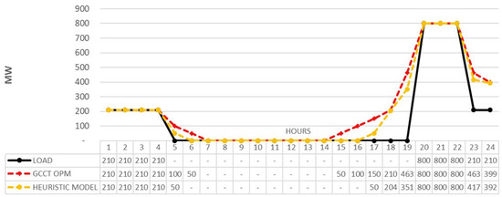 (II) The second case examines a scenario where the CCGT is initially offline on the analyzed day, but starts up later, eventually achieving maximum output capacity by the end of the day.