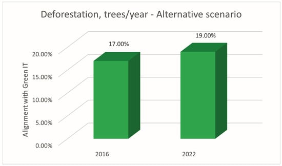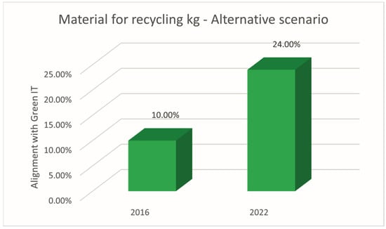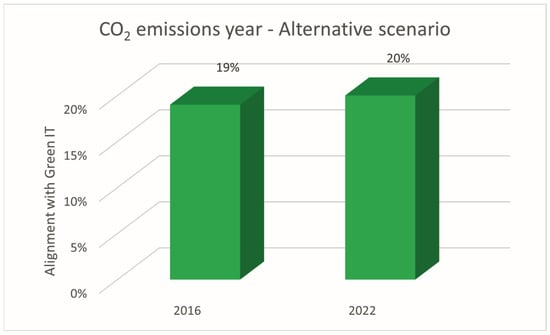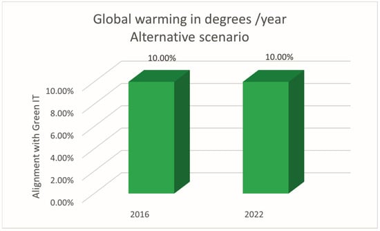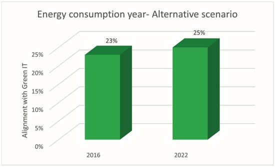 In these results, it is also possible to identify the improvement of the alignment with Green IT in the Environmental vector, which emerges as an approach to promote sustainability in the IT sector, verifying that the role of the PA and LA is improved through their contribution to this improvement, by about 21%, as can be seen in the results. It should be noted that all Green IT indicators improved from 2016 to 2022.