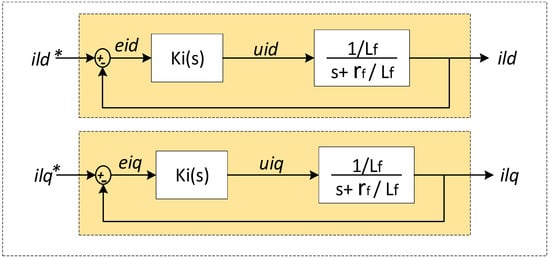 From Figure 4, it can be concluded that the two current control loops of the two d- and q-axes are similar. Thus, the corresponding controllers can also be identical. Since the switching frequency is significantly higher than the line frequency, sample delays can be neglected in controller design [].