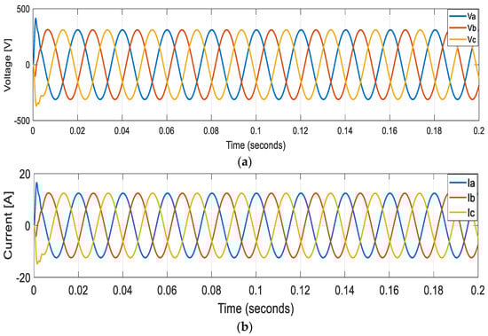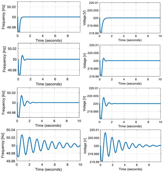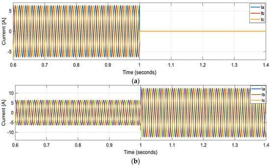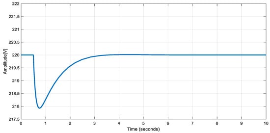 Synchronization is necessary for the transition from islanded mode to grid-connected mode to avoid high current fluctuations and equipment damage. The synchronization process between the DG unit and the main grid is illustrated in Figure 22a,b. As can be seen at the start of the synchronization the voltage waveforms are not synchronized yet and the voltage difference between the MG and the grid is high, during the synchronization process the voltage waveforms started becoming closer to each other as shown by Figure 22b and the voltage difference starts decreasing as depicted in Figure 22a. At the end of the synchronization process, the voltage waveforms are matched and the voltage error value is decreased to zero, which ensures a seamless transition mode. It is worth to notice that the synchronization process has no impact on the system stability since the bandwidth is much more reduced.