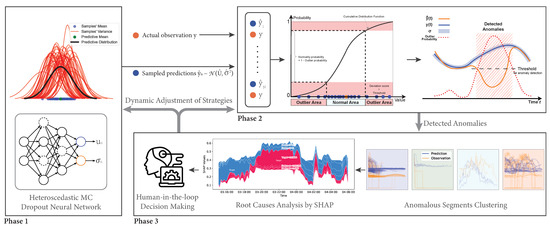 The probabilistic prediction phase, referred to as Phase 1 in Figure 3, aims to estimate a predictive distribution with respect to the given multivariate input time-series features. The predictive distribution’s variance indicates the total uncertainty of the model and can be further categorized into aleatoric or epistemic uncertainty [26]. The former stems from inherent randomness and is irreducible. By contrast, the latter is reducible through adequate training samples as it arises due to insufficient knowledge of the optimal model.