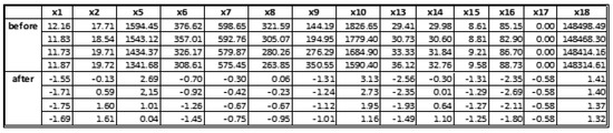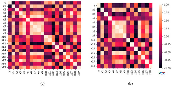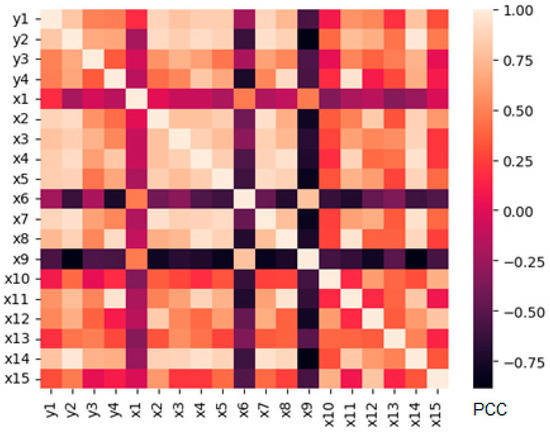 To explain the mechanism of the multifactor model operation, we can use the following visual representation of the one-iteration forecast result. Figure 8 shows a heat map of the correlation between factors and predicted variables. We used the Pearson correlation coefficient (PCC) as a coefficient (Figure 9).