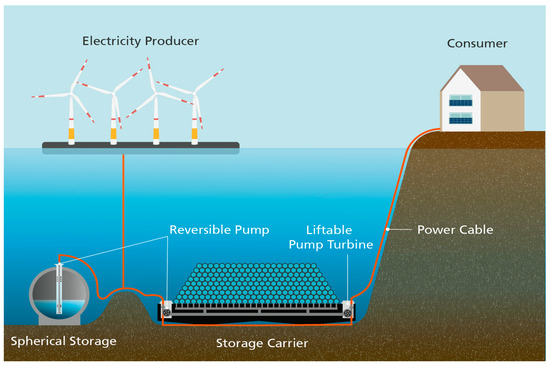 - Slocum, A.H.; Fennell, G.E.; Dundar, G.; Hodder, B.G.; Meredith, J.D.; Sager, M.A. Ocean Renewable Energy Storage (ORES) System: Analysis of an Undersea Energy Storage Concept. Proc. IEEE 2013, 101, 906–924. [Google Scholar] [CrossRef]