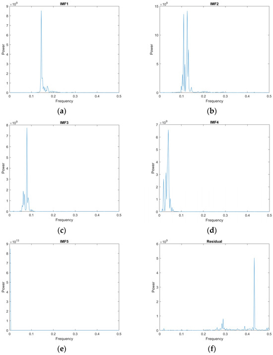 Selecting the appropriate decomposition levels for VMD is a significant challenge that many researchers aim to resolve. Excessive decomposition levels can lead to mode aliasing issues and introduce additional noise, while an inadequate number of IMFs can result in insufficient decomposition of the original data [77]. To avoid trial and error and reduce the time consumed in the optimization process, an automatic process is needed. With EMD’s advantageous concept of auto-adjusted decomposition levels, EMD can be applied as a guide for adjusting an appropriate decomposition level in VMD [53].