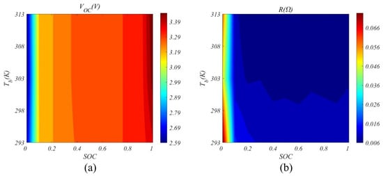 Contours of , and battery parameters (a) open voltage; (b) internal resistance.