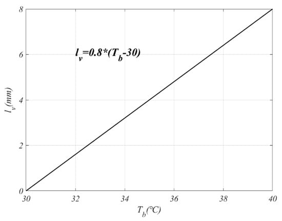 The battery cooling valve used in this study is a proportional valve with a diameter of 8 mm. When is below 30 , the valve remains closed, and the chiller in the battery cooling circuit does not need to be coupled with the AC circuit. When exceeds 30 , the valve gradually opens to couple the battery cooling circuit with the AC circuit for heat exchange. The relationship between and the battery cooling valve lift is shown in Figure 4.