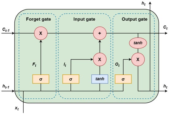 Figure 3 displays an LSTM cell, which is made of three discernable gates. The forget gate controls what information from the previous cell state should be forgotten, while the input gate determines what new information should be added to the current cell state. The output gate regulates what information should be exposed to the next cell, filtering less important information out. Networks based on bidirectional LSTM cells are also used in papers, such as []. Bidirectional cells add upon the original LSTM cells with a functionality of passing information forward or backwards through the cell. The Gated Recurrent Unit (GRU) [] is also closely related to—and can be seen as a precursor to—LSTM. One of the disadvantages is the vulnerability to vanishing/exploding gradients when training RNN models. They are also often computationally expensive to train. However, due to their suitability for sequential and time-series data, the authors recognize RNNs as powerful tools in solar forecasting when trained and constructed correctly.