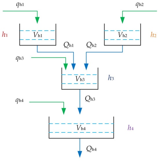 In this paper, a multi-energy combined system in a certain region is selected for the analysis of short-term optimal scheduling. The combined system includes two thermal power units with installed capacities of 1000 MW and 660 MW, respectively. The cascade hydropower system consists of four hydropower stations, whose hydraulic connection is shown in Figure 3. The installed capacity of hydropower stations h1~h3 is 120 MW, and that of hydropower station h4 is 300 MW. The total installed capacity of wind farms and photovoltaic power plants is 200 MW and 120 MW, respectively. A pumped storage power station with an installed capacity of 200 MW is added to the system, which adopts the variable speed pumping storage units. The pollutant emission coefficient of thermal power plants and the operation parameters of cascade hydropower stations are derived from the literature []. The upper and lower limits of thermal power are set as (500, 1000) MW and (330, 660) MW, respectively.