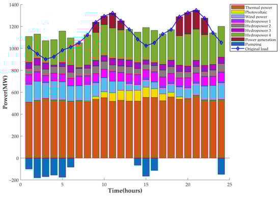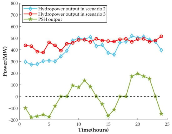 As the PSH is added to the combined system, the intra-day stations scheduling diagram corresponding to the compromise solution is as Figure 10.