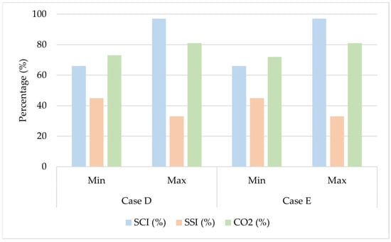 This case study was chosen as an example of foreshadowing a particular condition in which the hydraulic intervention area includes both a portion of the primary electrical substation and a municipal border (Figure 7). The GSI project allows up to 28% of rainwater to be harvested for case E and up to 32% for case D (rainwater volume calculated for 30 minutes with a 20-year return time). Encouraging infiltration and absorption reduces the risks associated with extreme weather events while avoiding costly upgrades to the urban sewer system (Figure 8 and Figure 9).
