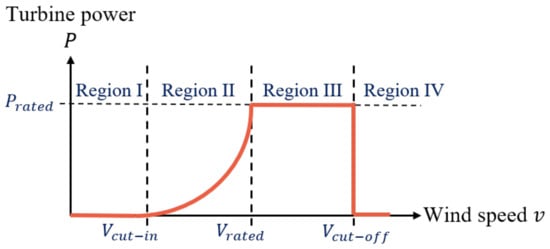 Within the FOWT system, primary-level safety control, second-level supervisory control, and third-level closed-loop control collectively ensure the safe operation of the turbine. The third-level closed-loop control is specifically responsible for ensuring that the wind turbine meets power production objectives based on four operating regions, which are determined by incoming wind speed, as depicted in Figure 3.