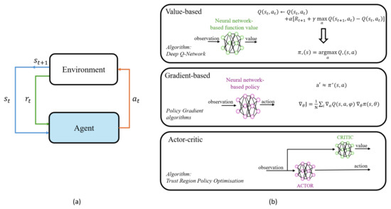 - Sutton, R.; Barto, A. Reinforcement Learning: An Introduction, 2nd ed.; The MIT Press: Cambridge, MA, USA, 2018. [Google Scholar]
