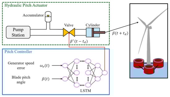 - Roh, C. Deep-Learning-Based Pitch Controller for Floating Offshore Wind Turbine Systems with Compensation for Delay of Hydraulic Actuators. Energies 2022, 15, 3136. [Google Scholar] [CrossRef]