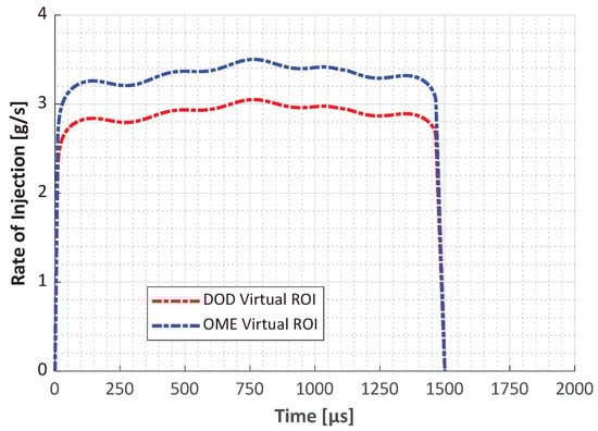 The liquid injection was realized with the Blob method that initializes the liquid parcels with a size corresponding to the actual nozzle exit diameter of the injector. The same methodology to generate the injection rates is employed for all calculations. The publicly available tool from the Polytechnical University of Valencia [28] guarantees a standardized method for numerical studies to create consistent injection rate profiles for the ECN Spray A3 injector. Figure 1 depicts the rates of injections for DOD and OME for an injection pressure of p = 1500 bar and for an injection duration of t = 1500 s as stated in Table 3 for the studied operating points.
