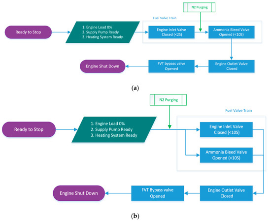 In addition, variations in the nitrogen purging volume during the shutdown process were identified based on the purging pressure currently recommended for ships. The minimum supply volume was verified, with a total volume of 2.67 m3 required at 1200 kPa. The findings indicate that purging pressure should vary depending on factors such as engine size and pipe design.