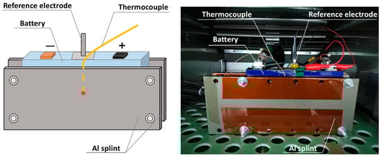 Liu et al. [] introduced a novel fast-charging approach that hinges on real-time monitoring of the negative electrode potential and adjusting the charging current dynamically. The negative electrode potential is measured by a reference electrode inserted between the anode and cathode and shielded by a separator (Figure 2). This configuration enables the measurement of the negative electrode potential, allowing for the charging current to be modulated in real time to maintain the negative electrode potential slightly above 0 V. The authors demonstrated that this fast-charging technique could enhance the charging speed by 40% relative to the manufacturer’s standard fast charging protocol, without inducing lithium plating at the negative electrode after 100 fast charging cycles, as verified by Scanning Electron Microscopy (SEM).