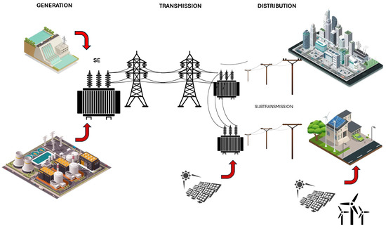 For more than seventy years, most of the electricity generated has been produced by large-scale centralized plants owned by public utilities regulated by state standards. This has been the case in Europe, the United States, and other countries; however, in the last twenty years, private companies—also supported by public shareholders—have become increasingly important in energy markets [1]. Parallel to this, research has been carried out worldwide on new models related to the architecture of future electricity systems. In this context, analysis arises regarding the implementation of Distributed Generation (DG) plants; these projects include a variety of technologies with different characteristics in terms of efficiency, demand compatibility, capital and operating costs, emission levels, land occupation, and social acceptability [2,3]. Distributed generation (DG) of larger and smaller scales can be referred to as “Taking Power To the Load” (TPTL), which ensures electricity generation with high efficiency and low pollution. The DG ratings range from 5 kW to 100 MW worldwide [4,5]. Additionally, implementing a distributed generation unit has a low cost investment with respect to the investment required by conventional power generation plants that are centralized; this is complementary to the indicated maintenance cost of the DG, which, like that of certain renewable energies, is low due to the absence of moving parts [6]. Several research developments have encouraged the entry of distributed generation and energy storage at the distribution level; among these, Ref. [7] can be cited, which mentions the following: