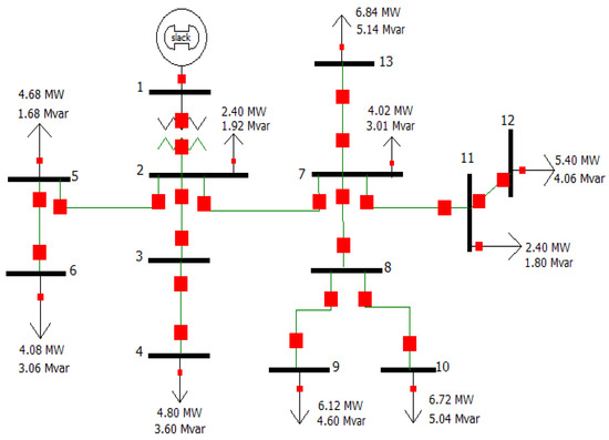 - Supply of the load corresponding to that established in the 13-node IEEE system.