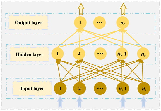 It is assumed that the number of neurons in the input layer, hidden layer, and output layer is ni, nh, and no, respectively. The corresponding number of input and output variables is ni and no, respectively. The connection weight matrix between the input layer and the hidden layer is wi, as shown in Equation (17).