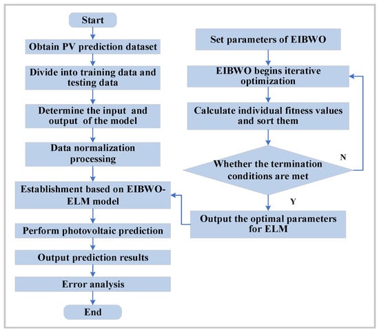- EIBWO-ELM provides a new PV prediction method to improve the integration and efficiency of renewable energy in energy portfolios. The good performance of EIBWO-ELM in instance data validation not only demonstrates the potential of intelligent optimization technology in renewable energy prediction but also provides a universal framework for developing similar intelligent algorithms.