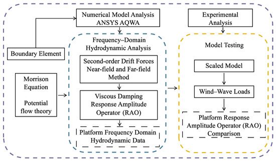 To provide a clear exposition of the research approach, Figure 1 displays a flowchart that depicts the study’s content and outlined methodology. The diagram encompasses the investigation of numerical models, the theoretical framework utilized, and the data derived from hydrodynamic calculations. Finally, a comparative and validating analysis of the two models is conducted through experimental methods.