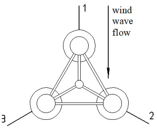 In the equation, represents the inertial force acting on the unit height column; denotes the velocity force exerted on the unit height column; stands for the diameter of the column; represents the unit height; signifies the density of water; denotes the relative velocity between the water particle and the floating foundation; represents the velocity of the water particle; and and , respectively, represent the added mass coefficient and the drag coefficient. The value of , is typically set to 1.0.