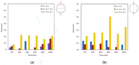 Dispersion–saturation: (a) perpendicular bedding loading; (b) parallel bedding loading.