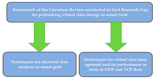 This section is divided into two main categories to identify the research gap, as shown in Figure 3. This portion summarizes the theoretical results of the different research techniques for analyzing electrical data from smart grids and its manipulation with different virtual data storing techniques.