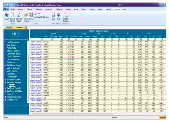 Load flow analysis software SynerGEE Electric 4.0 results achieved on single feeder analysis (software-generated figure).