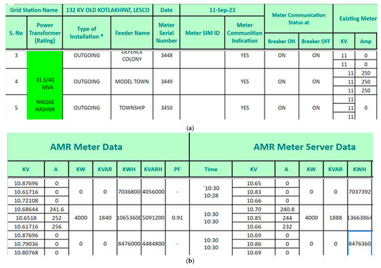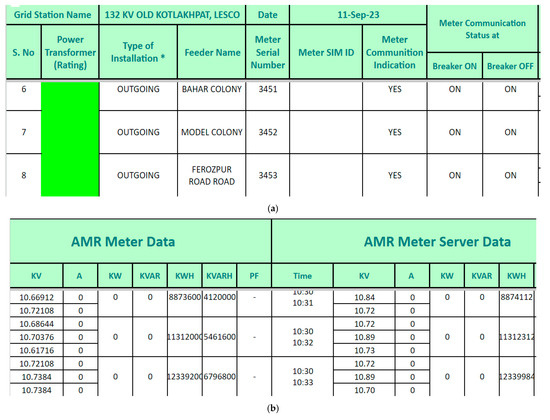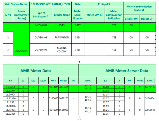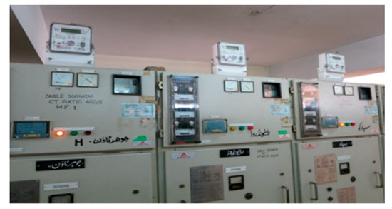 Multiple GPRS meters are installed on each feeder of a grid station to collect a large amount of data, as shown in Figure 12. Almost 10 to 15 distributed feeders are installed on each grid station, and the same number of GPRS meters, sending the information after 5 to 10 min, which is displayed on the control room screen, as shown in Figure 13. This creates a bulk quality of data needed to be stored, load flow analysis, security, and analytical processes.
