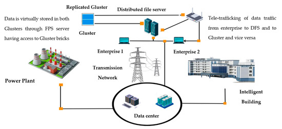 Figure 13 shows centralized data centers: after being extracted, the data are frequently sent to these facilities for processing, storing, and analysis. These hubs are essential for controlling and enhancing the grid’s overall performance. However, the storage of data is important, which is performed through tele-trafficking and storage in replicated Gluster.