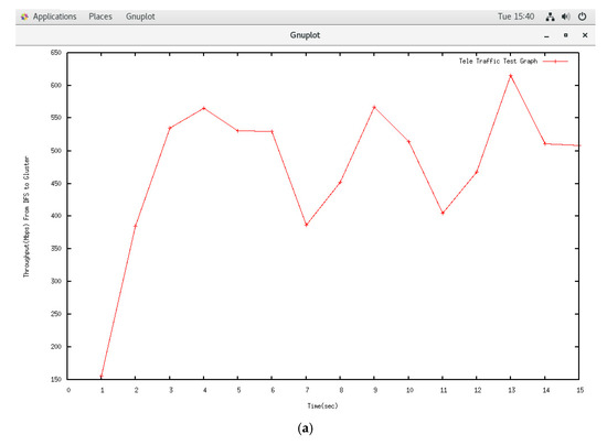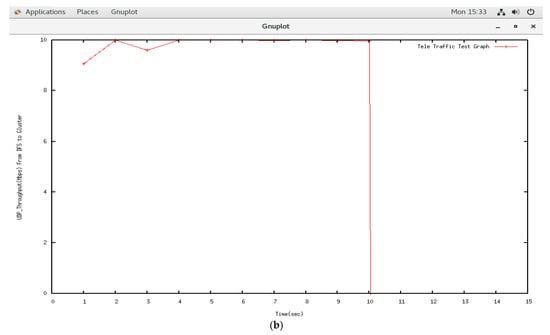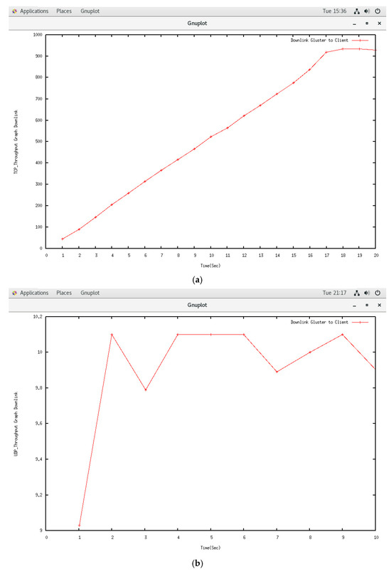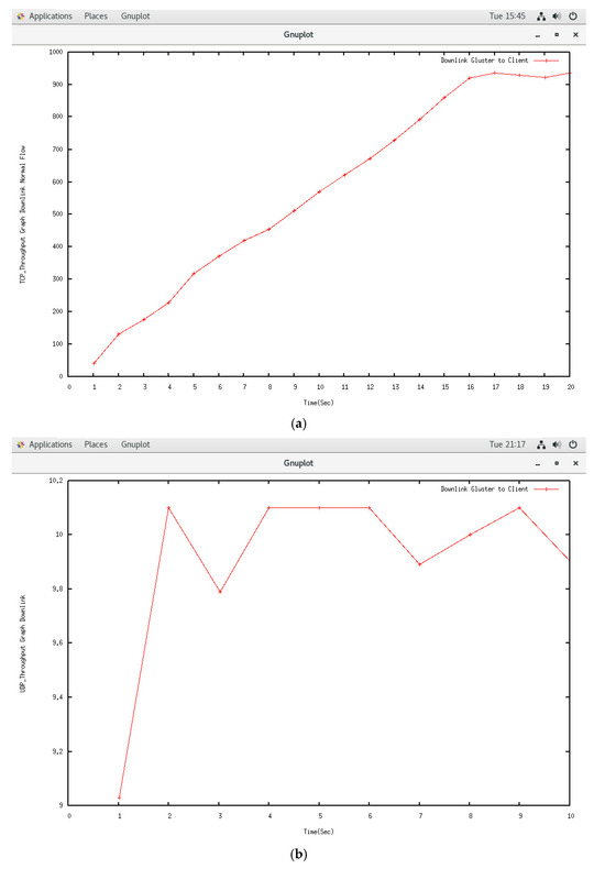 Figure 30a,b illustrate the TCP and UDP graphs (downlink heavy flow) obtained from the GNU plot utility.
