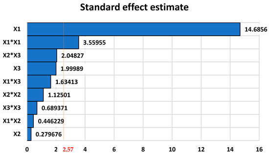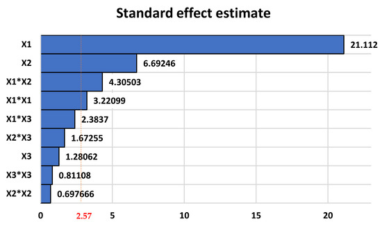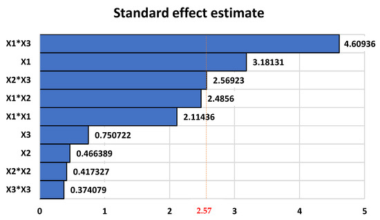The Pareto chart for the estimated standardized effects is presented in Figure 3: