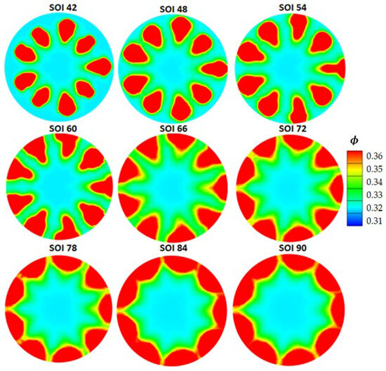 Chicago/Turabian StyleKakoee, Alireza, Maciej Mikulski, Aneesh Vasudev, Martin Axelsson, Jari Hyvönen, Mohammad Mahdi Salahi, and Amin Mahmoudzadeh Andwari. 2024. "Start of Injection Influence on In-Cylinder Fuel Distribution, Engine Performance and Emission Characteristic in a RCCI Marine Engine" Energies 17, no. 10: 2370. https://doi.org/10.3390/en17102370
