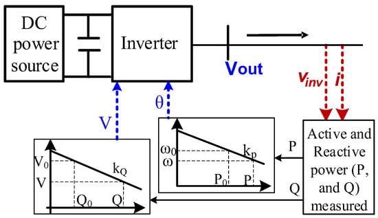 Figure 3. Functional diagram of grid-forming inverter using droop control with drooping characteristics.