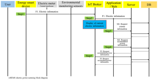 Figure 2 shows a block diagram for the power management and control of the i-HEMS system. The power usage information of the device, based on the user’s usage event, is transmitted to the IoT Broker through Zigbee communication and then sent to the web and server for storage as data. The stored power data are sent to the IoT Broker for the determination of the power device control algorithm.