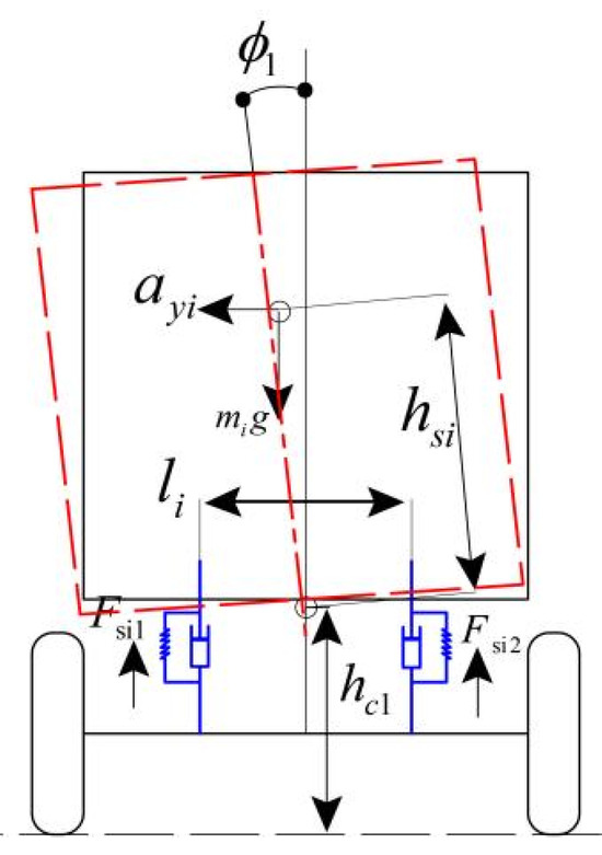 The force of the articulated bus was analyzed based on the above assumptions, as shown in Figure 4. The force analysis on the roll motion of the articulated bus is shown in Figure 5.