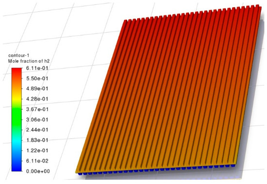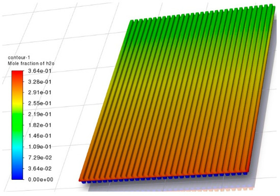 Mass transfer in the fuel cell channels is presented in Figure 16, Figure 17, Figure 18, Figure 19, Figure 20 and Figure 21.
